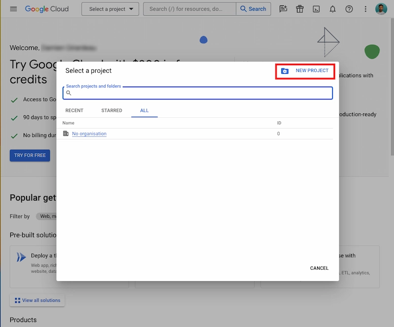 Inscríbete en Consola de desarrolladores de Google y cree un nuevo proyecto o utilice un proyecto Google existente.