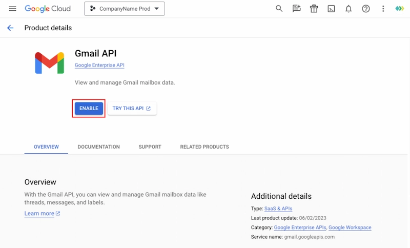 Configuración de la API de Gmail para enviar mensajes de correo electrónico