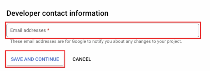 10. Sección de la pantalla de consentimiento OAuth - Información de contacto del desarrollador