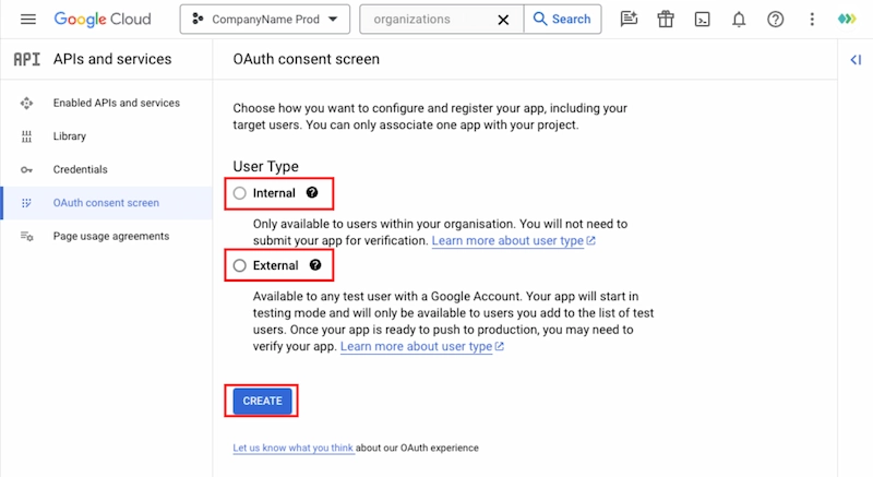 Tipo de usuario" como "Interno": En este modo, tu aplicación se limita a los usuarios de Google Workspace dentro de tu organización.
