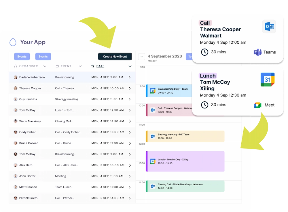 A Calendar API allows your application to access, create, and manage user events programmatically. It helps you automate scheduling, reminders, and availability checks directly within your product: no manual setup or calendar switching required.